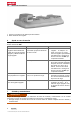 5.3 Extracción de la batería 1. Accione el mecanismo de desbloqueo de la batería. 2. Retire la batería del cargador. 6 Ayuda en caso de averías Si se producen averías que no estén incluidas en esta tabla o que no pueda solucionar usted, diríjase al Servicio Técnico de Hilti. Anomalía La batería se encuentra en el cargador: LED indicador del estado de carga de la batería apagado y LED de estado de carga apagado.