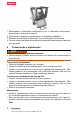 5.1.2 Retirar a bateria 1. Pressione os botões de destravamento da bateria. 2. Retire a bateria para fora do suporte da ferramenta. 5.1.3 Carregar a bateria 1. Antes de carregar, leia o manual de instruções do carregador. 2. Certifique-se de que os contactos da bateria e do carregador estão limpos e secos. 3. Carregue a bateria num carregador aprovado. 5.1.4 Ligar Se engatar o produto no gancho universal ou o montar num tripé, certifique-se de que o produto está montado com segurança.