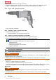 ▶ Coloque o comutador de rotação para a direita/esquerda em rotação para a direita ou para a esquerda. 5.2 1. 2. 3. 4. Substituir a ferramenta de encaixe Puxe pelo limitador de profundidade, soltando assim a ligação de engate. Pressione o porta-ferramentas, rodando ligeiramente, contra a aparafusadora e mantenha esta posição. Com a outra mão, retire a ferramenta de encaixe. Coloque a ferramenta de encaixe pretendida no porta-ferramentas e pressione-a na aparafusadora, até ao batente. 5.
