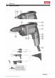 Porta-broca Mandril Interface ferramenta/acessório (ligação de engate) Sistema de acoplamento/engrenagem Gancho de cinto Motor Entrada de ar @ ; = % & ( ) 3.2 + § / : ∙ $ £ Comutador de rotação direita/esquerda Botão de bloqueio para operação continuada Interruptor on/off Cabo de alimentação Placa de características Saída de ar Limitador de profundidade Utilização correcta O produto descrito é uma ferramenta eléctrica manual, destinada ao mercado da instalação/aplicação de placas de gesso cartonado.