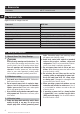 9. Localización de averías Fallo Posible causa Solución La herramienta no se pone en marcha. Suministro de corriente interrumpido. Cable de red o enchufe defectuosos. Enchufe otra herramienta eléctrica y compruebe si funciona. Encargue la revisión a un técnico cualificado y su sustitución en caso necesario. Encargue la revisión a un técnico cualificado y su sustitución en caso necesario. Utilice un alargador con una longitud permitida y/o con una sección transversal suficiente.