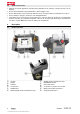5 Preparations at the workplace CAUTION Risk of damage due to severe heat ! ▶ Always remove the battery from the remote control unit for charging. ▶ 5.1 Charge the battery fully before using it for the first time. Removing the battery 1. Turn the catch in a counter-clockwise direction until the “unlocked” symbol appears. 2. Remove the battery from the slot in the remote control unit. 5.2 Charging the battery 1. Connect the plug of the charger to the battery. 2.