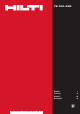 • En cas d'endommagements et/ou de dysfonctionnements, ne pas utiliser l'appareil électrique. Le faire immédiatement réparer par le S.A.V. Hilti. • Après des travaux de nettoyage et d'entretien, vérifier si tous les équipements de protection sont bien en place et fonctionnent parfaitement. Remarque Pour une utilisation en toute sécurité, utiliser uniquement des pièces de rechange et consommables d'origine.
