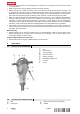 & Wheel securing parts (washer, retaining pin) 3.3 ( Power tool locating pin Intended use The product described is a hand-held electric breaker. It is designed for chiseling work on concrete, masonry and asphalt. It can also be used for excavating and compacting. The tool may be operated only when connected to a power supply providing a voltage and frequency in compliance with the information given on its rating plate. 3.4 Foreseeable misuse • The power tool may be used only in a dry environment.