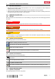 Estado Significado El indicador de funcionamiento parpadea en rojo. Protección contra sobrecalentamiento La tensión de la alimentación de corriente es muy alta. El indicador de funcionamiento se ilumina en rojo. 3.7 Se ha alcanzado el plazo de funcionamiento de la herramienta hasta la siguiente revisión por parte del Servicio Técnico. Lleve a tiempo el producto al Servicio Técnico de Hilti para que esté siempre a punto. Existe un fallo en la herramienta.