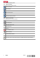 Este indicador ofrece un resumen de todas las herramientas y accesorios conectados con la perforadora de diamante. • Herramientas conectadas • Iniciar el establecimiento de la conexión • El indicador se oculta automáticamente transcurridos unos segundos o presionando la tecla . Volviendo a pulsar la tecla pasará a los siguientes datos de análisis.