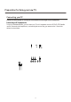 Preparation for Using your new TV RGB line PC/NB B To speaker B R COMPONENT IN R L R AUDIO IN C ANT IN 75 To VGA Audio line Connecting to an antenna To enjoy the terrestrial signal transmitted by your local TV station, you need an indoor or outdoor antenna (not supplied). Perfect picture quality requires a good signal and generally means that an outdoor antenna must be used. The exact type and location of the antenna will depend on your particular area.