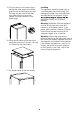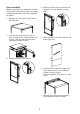 15.Put the door on the lower hinge. Holding the door against the cabinet insert the pin of the hinge in the door. The right and left sides of the door must align with the sides of the cabinet. And then securely fix the upper hinge. Levelling The appliance should be leveled with a small inclination backward to help the closing of the door. Four adjustable feet are provided for that purpose. All four ground for stability and to reduce vibration.
