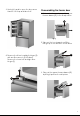 3. Use both hands to open the door more than 90°. Lift it up and take it off. Disassembling the freezer door 1. Pull out the freezer door and the upper freezer drawer (G) to the final position. G 2. Take out the ice storage box (H) by lifting it up in the direction of the arrow. 4. Remove the 4 hex head bolts hinges (E) with an Allen wrench (5/32",4mm). Remove the lower left and right door hinges (F). F H 3. Take out the upper freezer drawer (G) by lifting it up from the rail system.