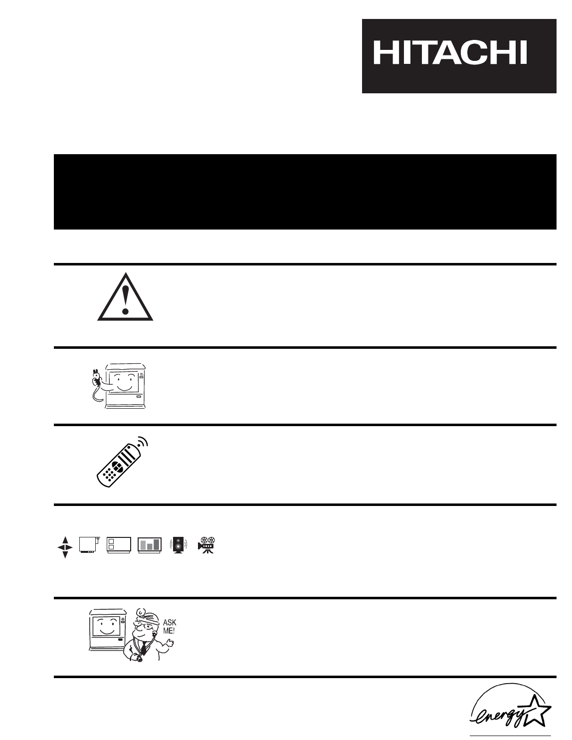 ASK DEMAN ME! MOI! USEFUL INFO e c i v r e s To locate an authorized HITACHI service facility in the continental U.S.A. and Canada, DIAL TOLL FREE 7 days a week, 24 hours a day 800 HITACHI (1-800-448-2244) Hitachi America, LTD. Home Electronics Division Hitachi has made every effort to assure you hours of trouble free operation from your unit. However, should you require service, a network of Hitachi Authorized Service Facilities has been established in all 50 states and Puerto Rico.