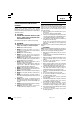 English 18. ALWAYS wear a mask or respirator to protect yourself from dust or potentially harmful particles generated during operation. 19. ALWAYS firmly grip the handle while operating. 20. ALWAYS be careful with buried object such as an underground wiring. Touching these active wiring or electric cable with this tool, you may receive an electric shock. Confirm if there are any buried object such as electric cable within the wall, floor or ceiling where you are going to operate here after. 21.
