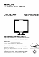 Colour/Color Monitor ENGLISH CML152XW USER MANUAL Congratulations on your selection of the HITACHI Colour/Color Monitor. Read the instructions inside carefully, and keep this user manual for future reference. NOTE: * The information in this manual is subject to change without notice. The manufacturer assumes no responsibility for any errors that may appear in this manual. * The reproduction, transmission or use of this documents or contents is not permitted without express written authority.