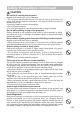Troubleshooting Regarding the indicator lamps (continued) 32:(5 LAMP TEMP indicator indicator indicator Description 7KHUH LV D SRVVLELOLW\ WKDW WKH LQWHULRU SRUWLRQ KDV EHFRPH KHDWHG Blinking In Red or Lighting In Red Turned off Lighting In Red 3OHDVH WXUQ WKH SRZHU RII DQG DOORZ WKH SURMHFWRU WR FRRO GRZQ DW OHDVW PLQXWHV $IWHU WKH SURMHFWRU KDV VXI¿FLHQWO\ FRROHG GRZQ SOHDVH PDNH FRQ¿UPDWLRQ RI WKH IROORZLQJ LWHPV DQG WKHQ WXUQ WKH SRZHU RQ DJDLQ ,V WKHUH EORFNDJH RI WKH DLU SDVVDJH D
