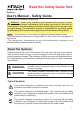 Read this Safety Guide first. Projector User's Manual - Safety Guide Thank you for purchasing this projector. WARNING • Before using, read these user's manuals of this projector to ensure correct usage through understanding. After reading, store them in a safe place for future reference. Incorrect handling of this product could possibly result in personal injury or physical damage.