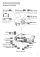 Part Names (continued) The Projector (continued) INPUT button 15 POWER indicator 14 39 TEMP indicator toggles between the signal ports. tells the state of power supply. Refer to the section “Power ON/OFF”. lights or blinks when any problem about internal temperature has happened. RGB VIDEO S-VIDEO 39 LAMP indicator COMPONENT VIDEO STANDBY/ON 14 button prepares for turning the power on/off. Refer to the section “Power ON/OFF”.