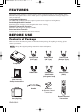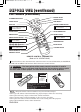 01CP-X380W 01.11.19 11:53 AM ページ 5 BEFORE USE (continued) Install the AA batteries into the remote control transmitter. 1. Remove the battery cover. Push the knob while lifting up the battery cover. 2. Load the batteries. Make sure the plus and minus poles are correctly oriented. 3. Close the battery cover. ENGLISH Loading the Batteries 2 1 CAUTION • Use only the specified batteries with this remote control transmitter. Also, do not mix new and old batteries.