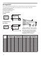 Setting up Arrangement Refer to the illustrations and tables below to determine screen size and projection distance. The values shown in the table are calculated for a full size screen: 1024×768 (a) Screen size (diagonal) (b) Projection distance (±10%) (c) Screen height (±10%) On a horizontal surface (a) (b) (c) up (c) down Suspended from the ceiling (a) (c) up (c) down • Keep a space of 30 cm or more between the sides of the projector and other objects such as walls.