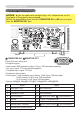 Connection to the ports Connection to the ports NOTICE ►Use the cables with straight plugs, not L-shaped ones, as the input ports of the projector are recessed. ►Only the signal that is input from the COMPUTER IN1 or IN2 can be output from the MONITOR OUT port. A B A COMPUTER IN1, B MONITOR OUT ⑪⑫⑬⑭⑮ ⑥⑦⑧⑨⑩ ①②③④⑤ D-sub 15pin mini shrink jack • Video signal: RGB separate, Analog, 0.7Vp-p, 75Ω terminated (positive) • H/V. sync. signal: TTL level (positive/negative) • Composite sync.