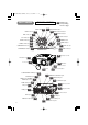 01CP-X885W/Vol1/E-責 02.10.8 9:05 PM ページ4 THE PROJECTOR PART NAMES Indicates the corresponding reference page 21 KEYSTONE button INPUT dial 16 22 ONE TOUCH button RGB indicator 16 19 RESET button BNC indicator 16 DVI indicator 16 RGB INPUT 16 FOCUS button KEYSTONE BNC VIDEO indicator 16 FOCUS VIDEO S-VIDEO indicator 16 16 ZOOM button ONE TOUCH DVI ZOOM RESET 25 MENU button S-VIDEO COMPONENT COMPONENT indicator 16 STANDBY/ON STANDBY/ON button 15 MENU 9 LAMP indicator Vol.