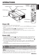 OPERATIONS (continued) Basic Operation The basic operations shown in Table 3 is performed from the supplied remote control transmitter or the projector control panel. Items indicated by (*) may be used from the control panel. Table 3 . Basic Operation Item Description Select Input Signal (*) : Press the INPUT button. RGB IN 1 → RGB IN 2 → DIGITAL → VIDEO → S-VIDEO → COMPONENT VIDEO (→ RGB IN 1) Select RGB Input : Press the RGB button.