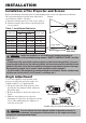 INSTALLATION Installation of the Projector and Screen Refer to the drawing and table below for determining of the screen size and projection distance. The projection distances shown in the table below Screen are for full size (1024 x 768 dots). a: Distance from the projector to the screen. (±10%) b: Distance from the lens center to the bottom of the screen. (±10%) Table 1. Installation Reference Screen size [inches (m)] a [inches (m)] Min. Max. b [inches (cm)] 40 (1.0) 60 (1.5) 55 (1.4) 85 (2.