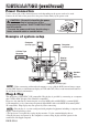 BEFORE USE (continued) Install the AA batteries into the remote control transmitter. 1. Remove the battery cover. Push the knob while lifting up the battery cover. 2. Load the batteries. Make sure the plus and minus poles are correctly oriented. 3. Close the battery cover. ENGLISH Loading the Batteries 1 2 CAUTION • Use only the specified batteries with this remote control transmitter. Also, do not mix new and old batteries.