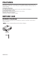BEFORE USE (continued) Part Names (continued) VIDEO Button STANDBY/ON Button O IDE LASER Button V BLANK Button STAN DBY/O N LAS ER RGB Button B RG Disk Pad BLAN MOUSE / RIGHT Button K Used to operate the mouse shift function and left click function. Used to click the right mouse button. POSITION Button AUTO Button MENU Button O AUT MENU SELECT Button ME Used to click the left mouse button. RESET Button ITION POS NU ME NU SEL Used to click the right mouse button.