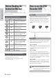 Marking with DVD-R, DVD-RW(VIDEO) and DVD-VIDEO discs Using Markers / Bookmarks DVD-RAM • The screen will display “Bookmark” in place of “Marker” if you are playing a DVD-R, DVDRW(VIDEO) and DVD-VIDEO. • Up to 10 scenes can be marked. • Removing disc will delete all bookmarks. DVD-R RW VIDEO RW VR DVD VIDEO Set marks at scenes you want to see again so that you can start playback from the marked position.