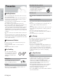 Getting Started Precaution DVD-RAM, DVD-RW and DVD-R Handling Cautions DVD-Video, CD • Before connecting other components to this recorder, be sure to turn them all off. • Do not move the recorder while a disc is being played, or the disc may be scratched or broken, and the recorder’s internal parts may be damaged. • Do not put a flower vase filled with water or any small metal objects on the recorder. • Be careful not to put your hand into the disc tray.