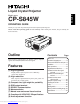 Liquid Crystal Projector ENGLISH Model name CP-S845W OPERATING GUIDE Thank you very much for purchasing this hitachi Liquid Crystal Projector. Please read this operating guide to use correctly. After reading this manual, keep it carefully for future reference. Outline This Liquid Crystal Projector can display various computer signals and NTSC/PAL/SECAM video signals. Features (1) High brightness A highly efficient optical system with a UHB lamp ensures high brightness.