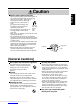 Caution ENGLISH Caution when replacing the lamp. • When replacing the lamp, turn off the power of the projector and disconnect the power plug from the power outlet. Then wait for 45 minutes to allow the lamp cool: Failure to do so could result in a burn. • For disposal of used lamp, treat Pull out the according to the instruction of power plug community authorities. from the • Since the lamp is made of glass, do power outlet. not apply shock to it and do not scratch it. • Also, do not use old lamp.