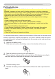 Setting up Connecting power supply WARNING ►Please use extra caution when connecting the power cord as incorrect or faulty connections may result in fire and/or electrical shock. • Only use the power cord that came with the projector. If it is damaged, contact your dealer to newly get correct one. • Only plug the power cord into an outlet rated for use with the power cord's specified voltage range. • Never modify the power cord. Never attempt to defeat the ground connection of the three-pronged plug.