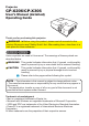 Troubleshooting Regarding the indicator lamps When operation of the LAMP, TEMP and POWER indicators differs from usual, check and cope with it according to the following table. POWER LAMP TEMP Description indicator indicator indicator Lighting Turned Turned The projector is in a standby state. In Orange off off Please refer to the section “Power on/off”. Blinking In Green Turned off Turned off The projector is warming up. Lighting In Green Turned off Turned off The projector is in an on state.