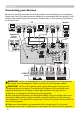 Setting up Connecting your devices Be sure to read the manuals for devices before connecting them to the projector. Make sure that all the devices are suitable to be connected with this product, and prepare the cables required to connect. Please refer to the following illustrations to connect them.