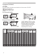 Setting up Setting up Install the projector according to the environment and manner the projector will be used in. Arrangement Refer to the illustrations and tables below to determine screen size and projection distance.