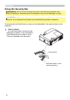 Setting up Using the Security Bar WARNING Ź'R QRW XVH WKH VHFXULW\ EDU WR SUHYHQW WKH SURMHFWRU IURP falling. Dropping or knocking over the projector may cause damage or injury. CAUTION Ź7KH VHFXULW\ EDU LV QRW D FRPSUHKHQVLYH WKHIW SUHYHQWLRQ measure. It is intended to be used as an extra theft prevention measure. A commercial anti-theft chain or wire can be attached to the security bar on the projector. to attach 1. How An anti-theft chain or wire can be attached as shown in the illustration.