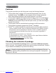 Contents Introduction . . . . . . . . . . . . . . . 3 Features . . . . . . . . . . . . . . . . . . . . . . 3 Checking the contents of package . . . 3 Part names . . . . . . . . . . . . . . . . . . . . 4 Setting up . . . . . . . . . . . . . . . . . 7 Arrangement . . . . . . . . . . . . . . . . . . . 7 Connecting with your devices . . . . . . 9 Connecting to a power supply. . . . . 14 Using the security bar and slot . . . . 14 Remote control . . . . . . . . . . . . 15 Installing the batteries . . . . . . .