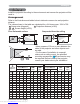 Setting up Setting up Install the projector according to the environment and manner the projector will be used in. Arrangement Refer to the illustrations and tables below to determine screen size and projection distance.