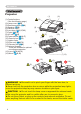 Maintenance Maintaining the air-filter (continued) NOTE • A filter unit of specified type will come with the replacement lamp for this projector. Replacing the filter unit at the same time with the lamp is recommended. • Please reset the filter time only when you have cleaned the air-filter, for a suitable indication about the air-filter. • The projector may display the message such as “CHECK THE AIR FLOW” or turn off the projector, to prevent the internal heat level rising.