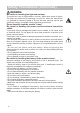 Safety Precautions (continued) NOTE About consumables. Lamp, LCD panels, polarizors and other optical components, and air filter and cooling fans have a different lifetime in each. These parts may need to be replaced after a long usage time. • This product isn’t designed for continuous use of long time.