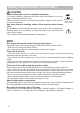 Safety Precautions (continued) CAUTION Remove the power cord for complete separation. • For safety purposes, disconnect the power cord if the projector is not to be used for prolonged periods of time. • Before cleaning, turn off and unplug the projector. Neglect could result in fire or electrical shock. Disconnect the plug from the power outlet. Ask your dealer to cleaning inside of the projector about every year. Accumulations of dust inside the projector cause result in fire or malfunction.