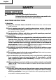 English 17. Never leave tool running unattended. Turn power off. Don’t leave tool until it comes to a complete stop. 18. Carefully handle power tools. Should a power tool be dropped or struck against hard materials inadvertently, it may be deformed, cracked, or damaged. 19. Do not wipe plastic parts with solvent. Solvents such as gasolie, thinner, benzine, carbon tetrachloride, and alcohol may damage and crack plastic parts. Do not wipe them with such solvents.