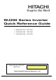 WJ200 Series Inverter Quick Reference Guide • Single-phase Input 200V class • Three-phase Input 200V class • Three-phase Input 400V class Manual Number: NT3251AX March 2012 Refer to the user manual for detail Hitachi Industrial Equipment Systems Co., Ltd.