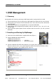 WIPWIP-5000アドミニストレーターマニュアル 5000アドミニストレーターマニュアル Contents 1. USB Management 1.1 Summary Configuration can be done by connecting the WIP-5000 and the management PC via USB. (1) Phone book backup: Saves the data from the WIP-5000 Phone book to the PC in CSV format. (2) Phone book restore: Restores Phone book data that has been edited on the PC in CSV format to the WIP-5000. (3) Config upload: Uploads the configuration file (user.ini) to the WIP-5000.