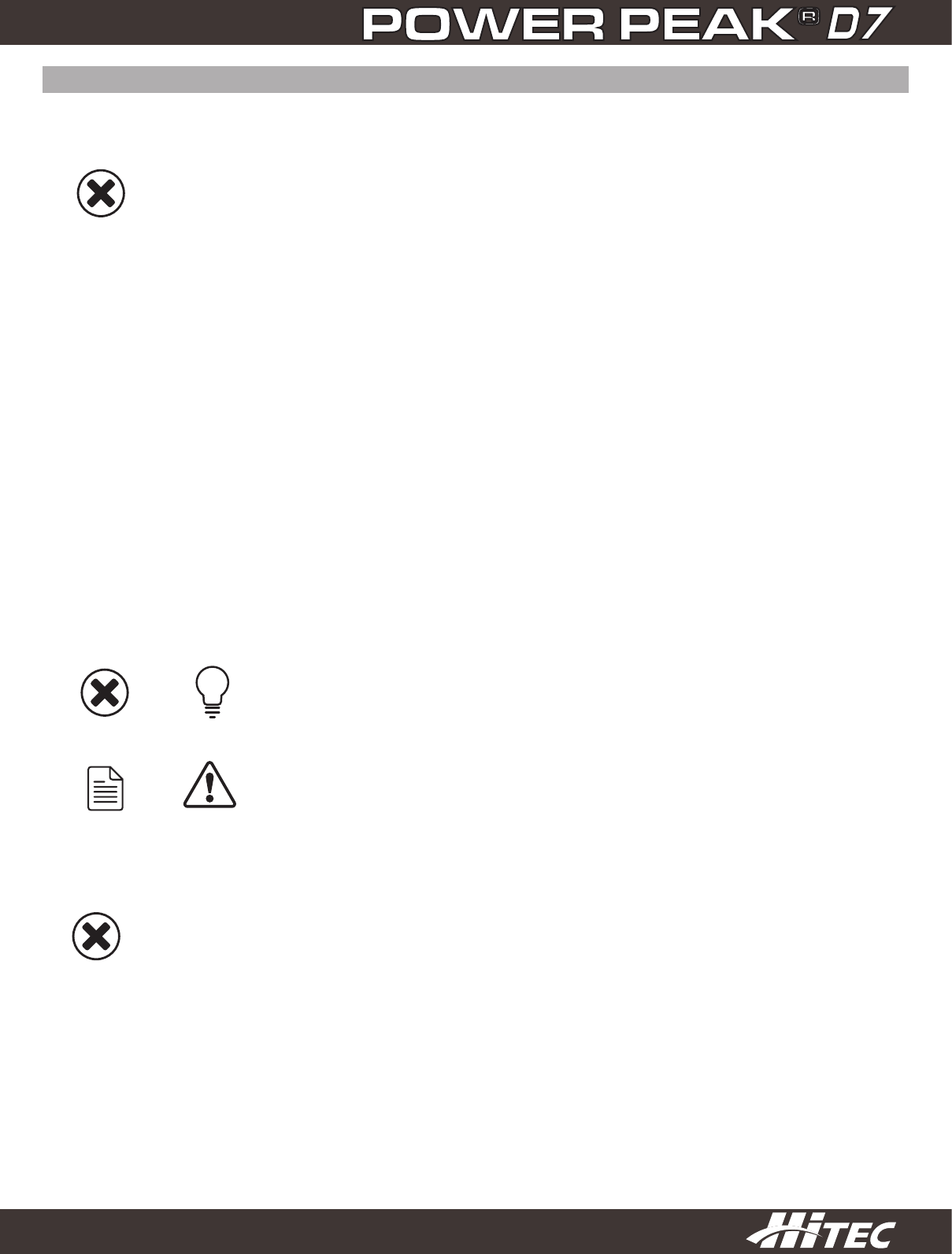 Hitec RCD USA will not be held responsible for any damages or injuries that may occur by persons who fail to