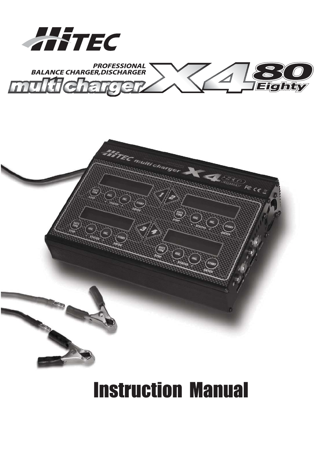 INTRODUCTION Congratulations on your purchase of the Hitec X4-80 Multi-Charger. You are now the owner of a compact multi chemistry battery charger with battery management and integral Lithium battery balancing features. The X4-80 features four totally independent and identical 50 watt charging circuits for a total power of 200 watts. As a result, it can simultaneously charge or discharge up to 4 separate battery packs.