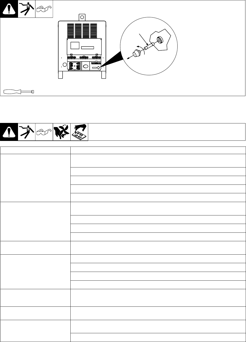 Erratic or improper weld output. Use proper size and type of weld cable (see Section 3-8).