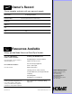 Replacement Parts. Model and serial number required when ordering parts from your local distributor.