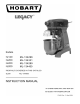 Installation, Operation and Care of LegacyTM 12 & 20-Quart Mixers SAVE THESE INSTRUCTIONS GENERAL The Legacy 12-quart mixer is a bench-type mixer which features a SmartTimer™, a manual bowl lift and a #12 attachment hub as standard equipment. The Legacy 20-quart mixer is a bench-type mixer which features a SmartTimer™, a manual bowl lift and a #12 attachment hub as standard equipment. With the use of special agitators, a 12 quart bowl may be used on the HL200 mixer.