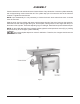 OPERATION Cut the meat into strips, turn the machine ON and feed the meat strips into the chopper, using the feed stomper only as needed. If the strips are cut to proper size, they will feed without assistance from the feed stomper, allowing both hands of the operator free to feed meat. When running meat through the chopper a second time, more speed is attained by feeding small quantities at a time than by trying to force large amounts with the feed stomper.